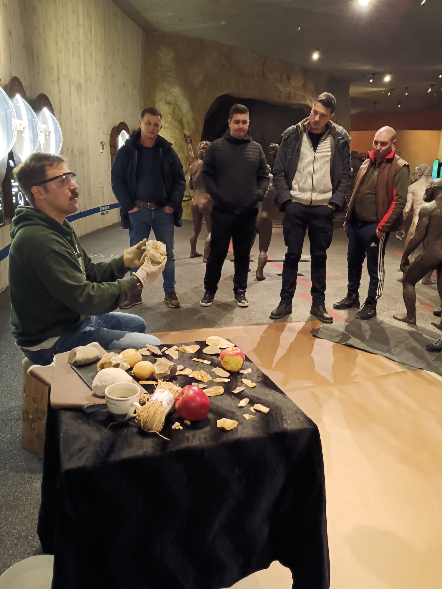 And at the end of the experience? A lesson in stone knapping! During the final weekend of the data collection phase, Nicolò proposed a small stone knapping demonstration for museum visitors. They were able to watch the raw material being worked right before their eyes, seeing and handling prehistoric tools that only moments earlier they had observed inside display cases. On this occasion as well, the Krapina audience proved to be active and engaged, asking questions and requesting further explanations even after the demonstration had ended.